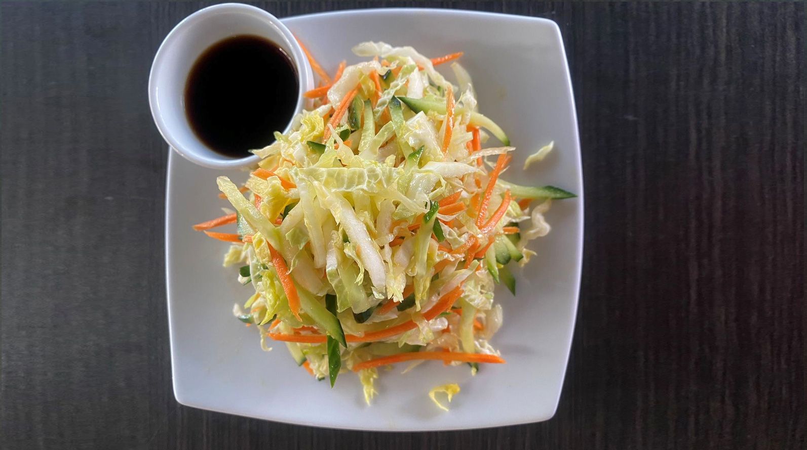 Με λάχανο, καρότο, κρεμμύδι, αγγούρι και chili mayo sauce